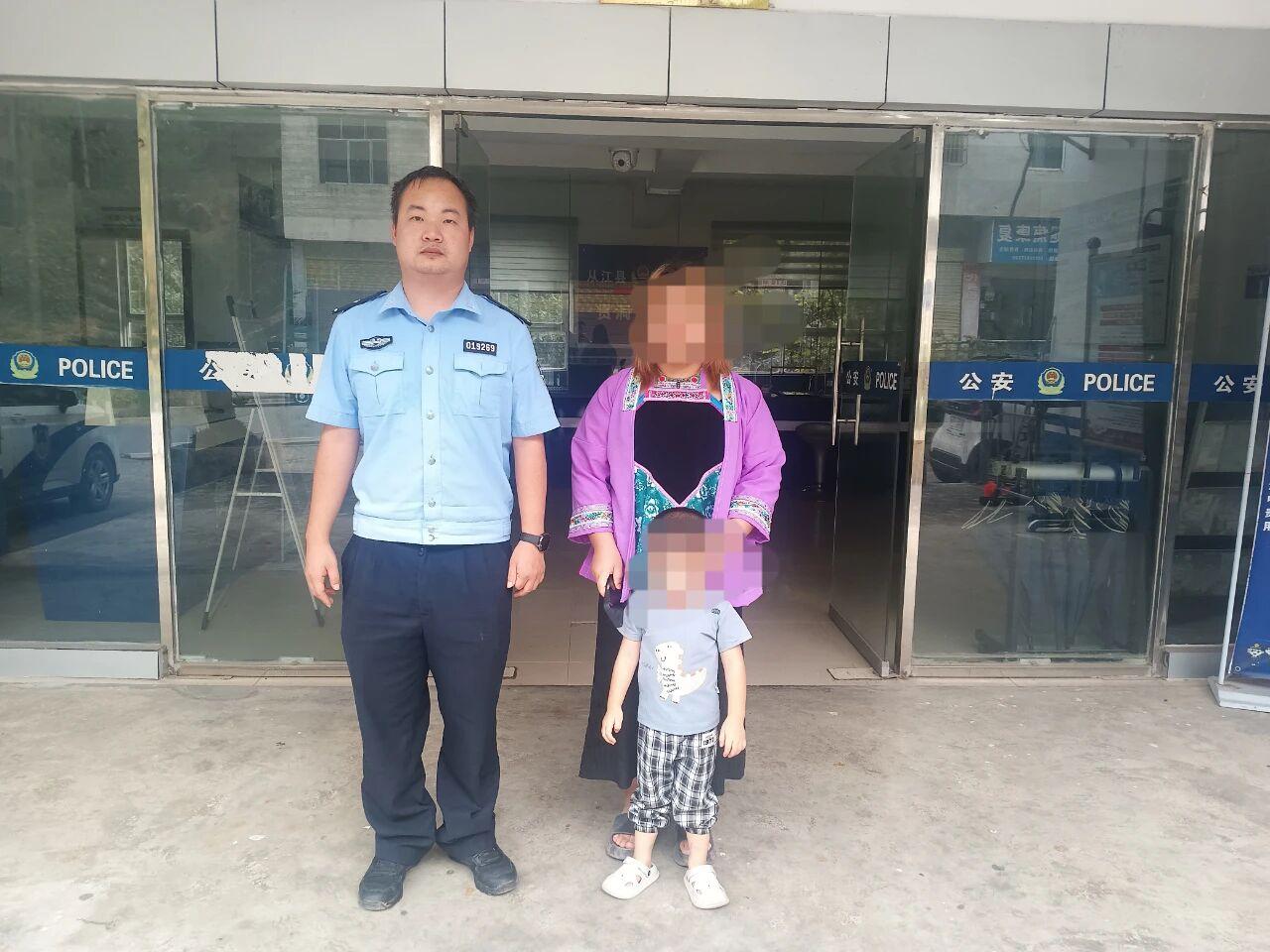 贯洞派出所民警立即赶往现场。到达后,民警发现走失的小孩年幼,说不清家庭住址,也不记得父母亲的名字,甚至连自己的名字也表述不清。